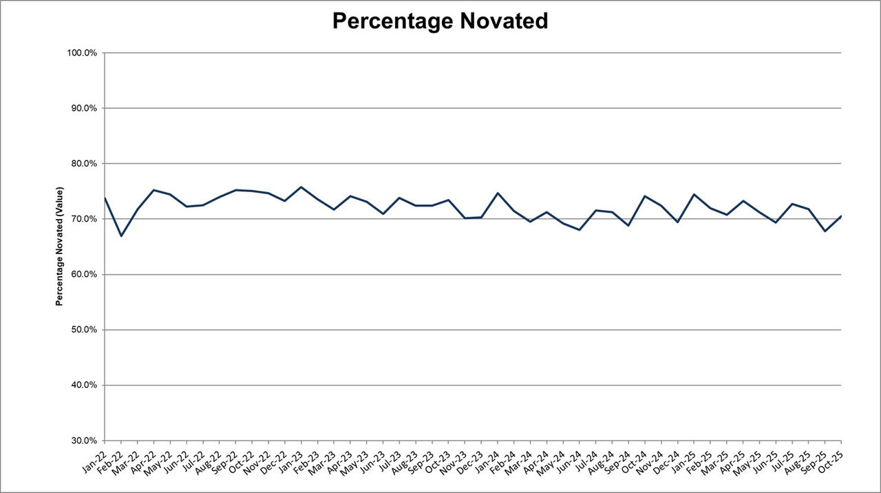 | Percentage novated* | 72.4% | 71.7% | 71.3% |