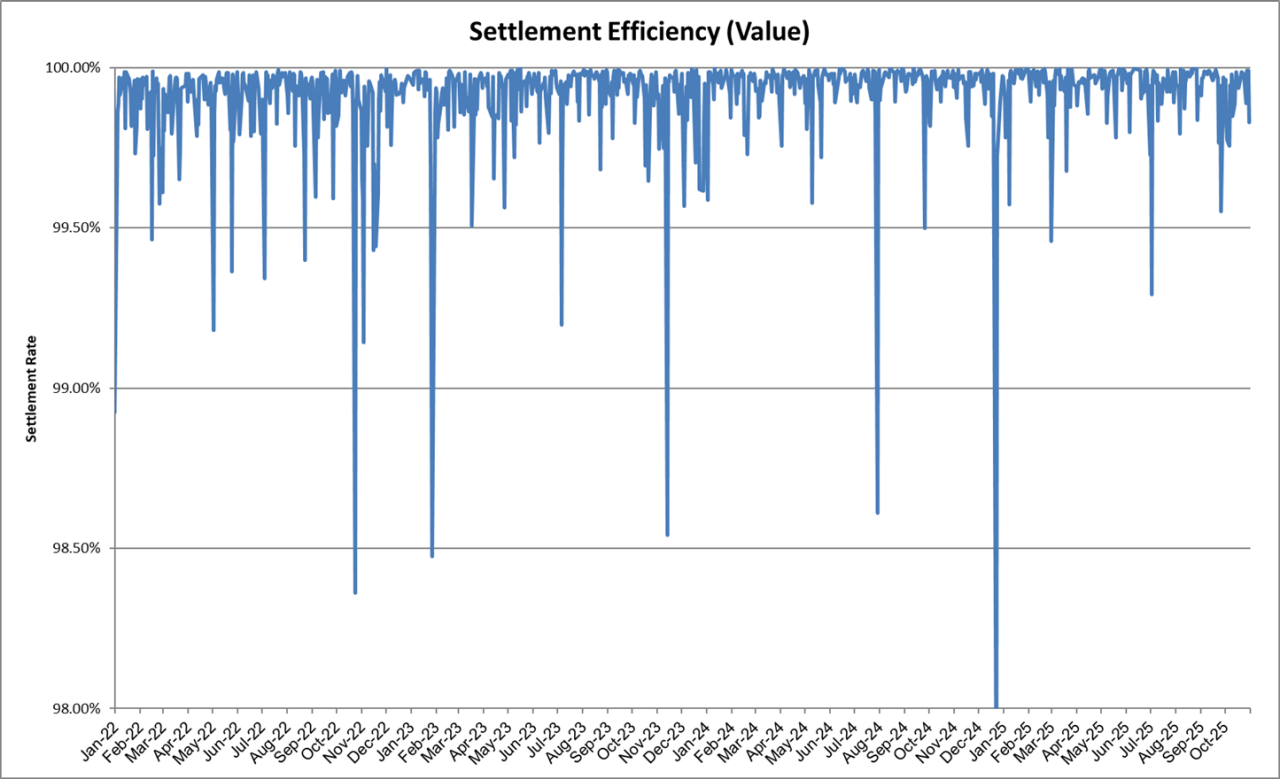 | Settlement efficiency (value) | 99.92% | 99.93% | 99.95% |