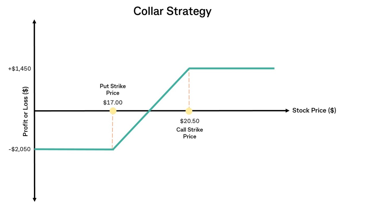 A collar strategy is an approach that can be used in moderately volatile markets when an investor's view of a specific holding is that the downside risk (the risk that the price of the security falls), exceeds the upside potential (the likelihood the price will increase).