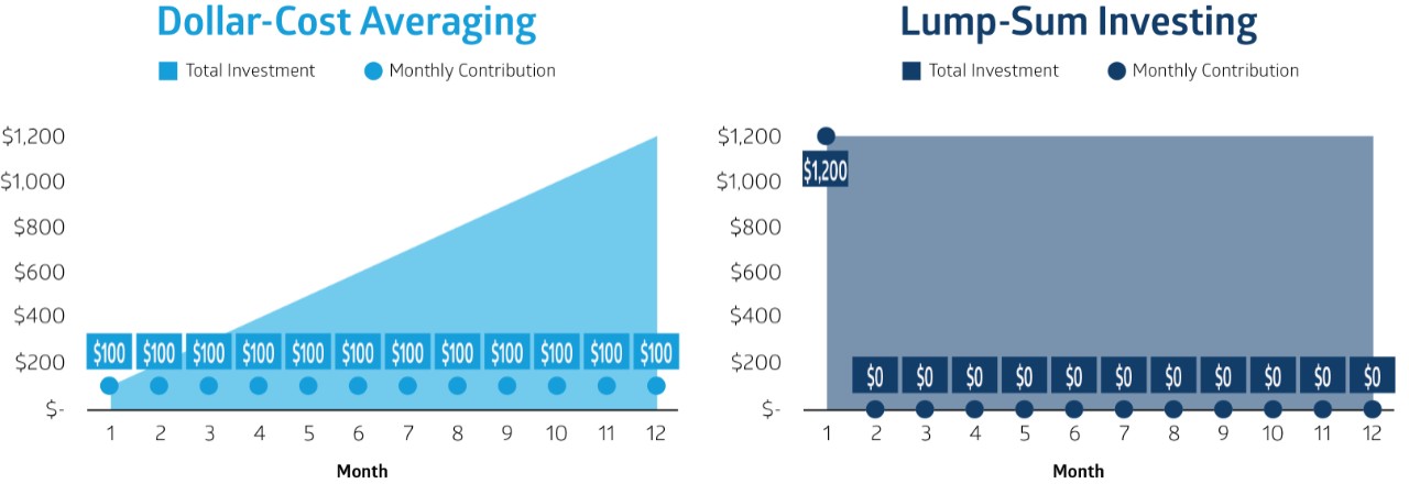 When maintaining perspective and long-term discipline, you could consider taking a “dollar-cost average” approach as opposed to a lump-sum approach.