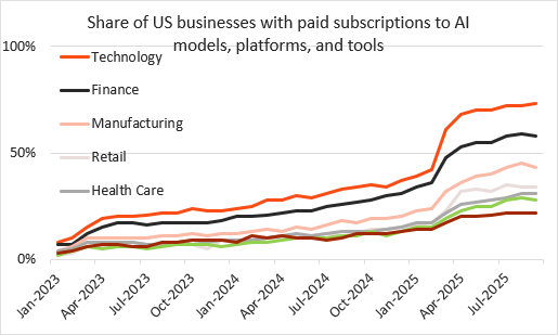Source: Ramp AI Index, business spend data from Ramp. Data as at September 2025.