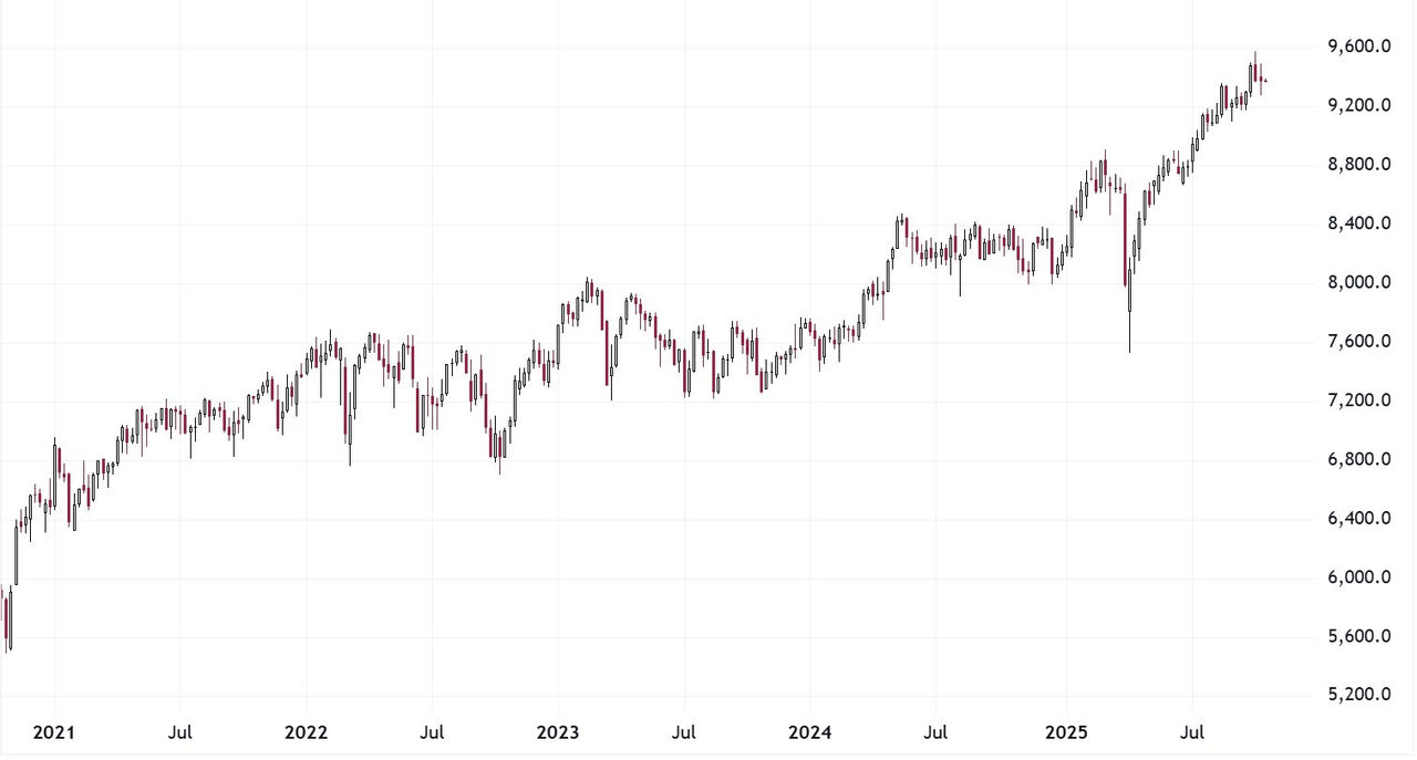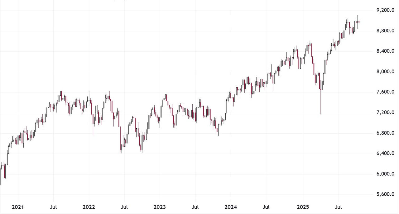 The FTSE, for now, remains in an uptrend. However, this uptrend only commenced at the start of 2025. Unlike the S&P 500, the FTSE tends to display more volatility, and its trend will typically pause for longer periods. This can make it harder for investors to understand whether the uptrend is being threatened or not.