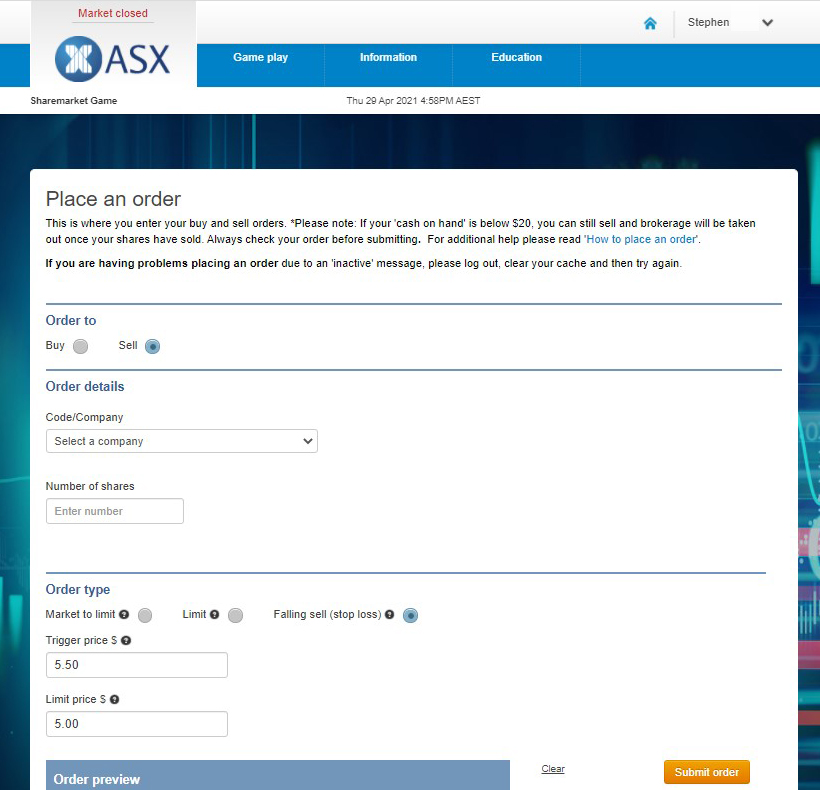 In real life, if you have a long investment timeframe (five years or more), you can take a few more chances, since you have time to rebuild your capital if there’s a market downturn or you make an unsuccessful investment. But in the Sharemarket Game, you won’t have the time to rebuild if you do suffer major losses.