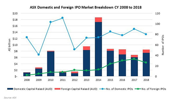 ASX has attracted listings from New Zealand, Israel, Singapore, Malaysia and Ireland. These countries have smaller public markets, a different investor risk profile to Australia and in some cases more limited listed peer groups for growth companies.