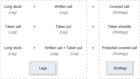For example, the covered call comprises a stock leg and an option leg: