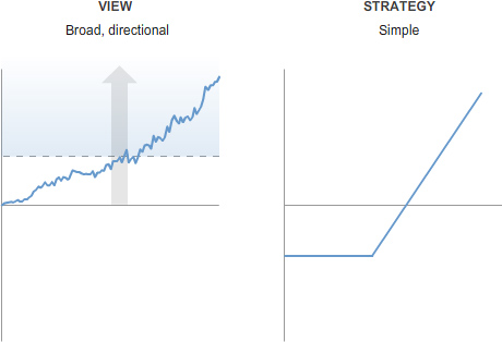 A broad, directional view can generally be traded using a basic option strategy.