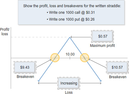Written straddle: maximum profit, maximum loss, breakevens