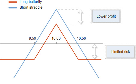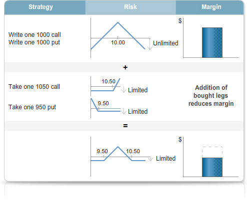 Because your risk exposure is lower, margins for the butterfly and condor will be lower than for the straddle or strangle.