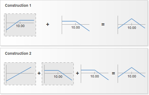 To construct the strategy using stock and call options, choose the same strike prices you would have used in the conventional construction of the strategy.