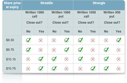 Written straddle vs. written strangle