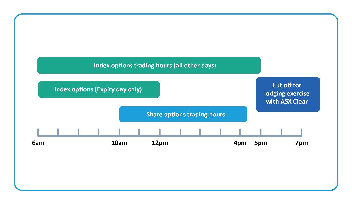 Trading hours are different for share options and index options.