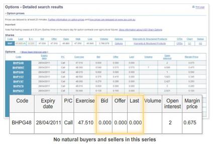 Market Makers are not required to provide quotes in all series, or at all times, and as such there can be no guarantee that all series will have prices displayed.
