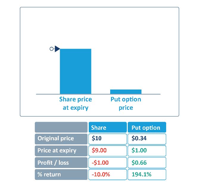 A put option is one of the few ways you can profit from a falling share price with limited risk.