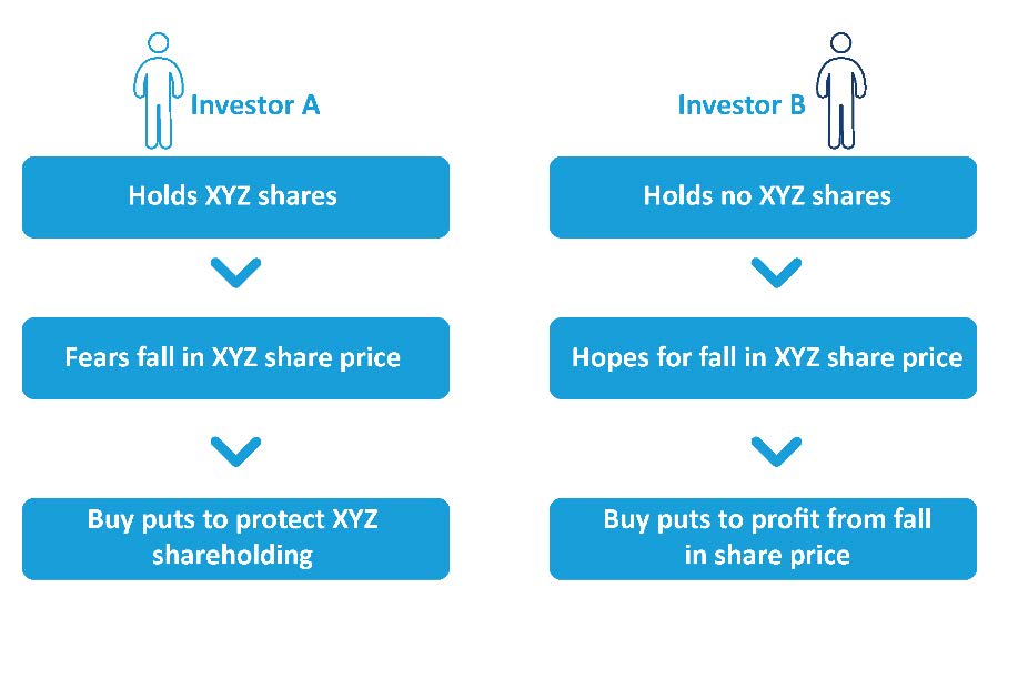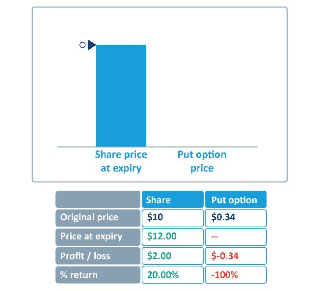 Buying puts to profit from a falling share price can be compared to buying calls to profit from a rising share price.